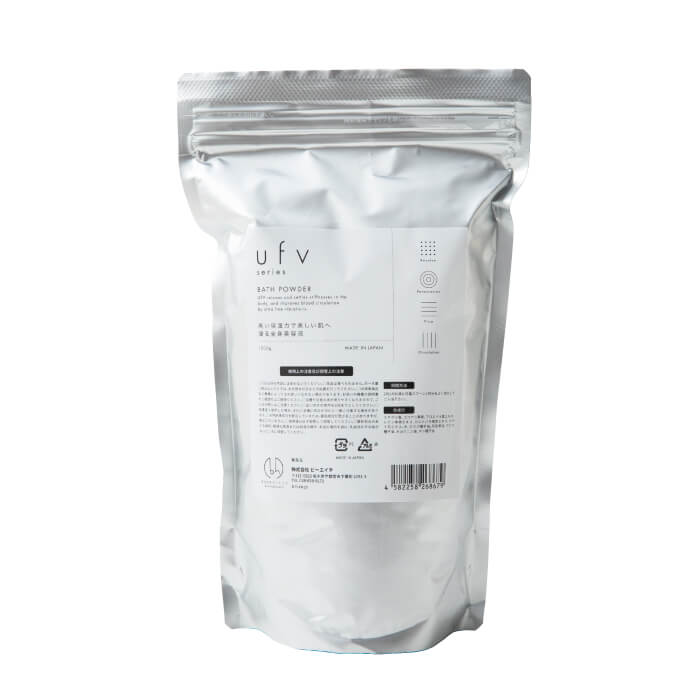 人は美を育む健康的な周波数を持っている。その考え方をもとに、天然美容成分のみを配合したバスパウダーにufv加工を施しました。